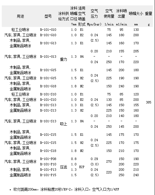 台湾宝丽R-101喷枪,重力式、吸上式、压送式喷枪